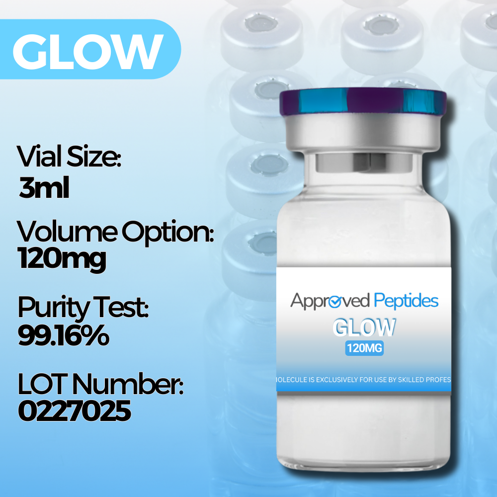 The peptide commonly referred to as GLOW is the copper-binding tripeptide GHK-Cu (Gly-His-Lys-Cu), originally identified in the 1970s in human plasma. Researchers discovered its remarkable ability to stimulate wound healing, tissue remodeling, and skin regeneration. Since then, GHK-Cu has become one of the most studied cosmetic and regenerative peptides, earning the nickname “the glow peptide” for its ability to promote youthful, vibrant skin appearance in research and topical formulations.